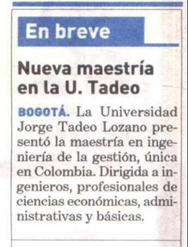 El diario ADN de Bogotá, publicó una breve reseña sobre el lanzamiento de la nueva maestría de Utadeo en Ingeniería de la Gestión realizado el jueves 14 de abril en el Hemiciclo.