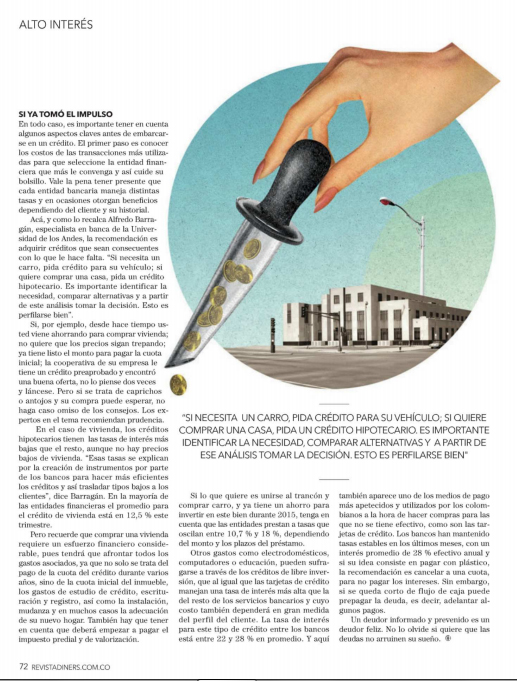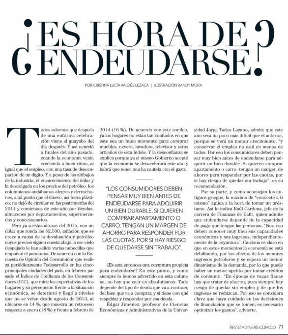 El profesor de Utadeo Edgar Jiménez, fue consultado por la revista Diners para opinar sobre la situación económica del país y la capacidad de endeudamiento de los ciudadanos en aspectos generales de acuerdo con el estado de la economía nacional.