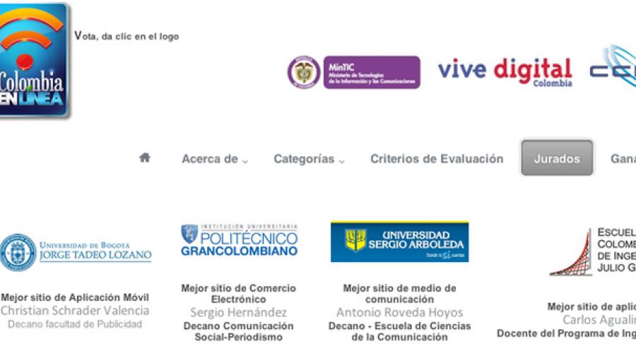 En tercera oportunidad la Universidad Jorge Tadeo Lozano ha sido invitada a participar como jurado del Premio Colombia en Línea organizado por la Cámara Colombiana de Informática y Telecomunicaciones y en alianza con El Tiempo y el Programa Gobierno en Línea del Ministerio de las Tecnologías de la Información y las Comunicaciones - MINTIC. En esta ocasión nos fue encargada la categoría de Mejor Aplicación Móvil en la cual participaron en esta categoría aquellas aplicaciones o programas informáticos provistos por empresas colombianas, que pueden ser utilizadas en dispositivos móviles, que incluyen teléfonos celulares inteligentes o tabletas. Las aplicaciones están disponibles en Colombia en tiendas virtuales como App Store, Android Market o Blackberry App world.