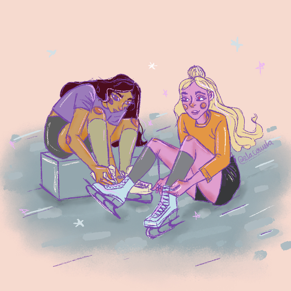 Era una reunión de ex patinadoras, habían algunos rostros familiares, pero ninguno como el de su mejor amiga; ambas se buscaban, pero no se encontraban. Al terminar, y con una melancolía que acongoja el pecho, una de ellas se sentó a observar detalladamente el hielo por el cual alguna vez patinó. La nostalgia le ganó y se colocó muy bien los zapatos, mientras se terminaba de amarrar el último cordón emitiendo gemidos por el dolor de su crujiente espalda, una voz familiar se sentó a su lado.