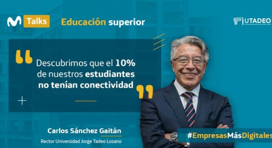 En el reciente capítulo de M Talks -contenido desarrollado por El Espectador en alianza con Movistar-, Carolina Navarrete, Directora B2B Telefónica Movistar Colombia, analizó junto al rector de Utadeo, Carlos Sánchez Gaitán, las rápidas transformaciones que se generaron en la Institución con el aislamiento, teniendo en cuenta que el 10 % de los estudiantes estaban incomunicados.