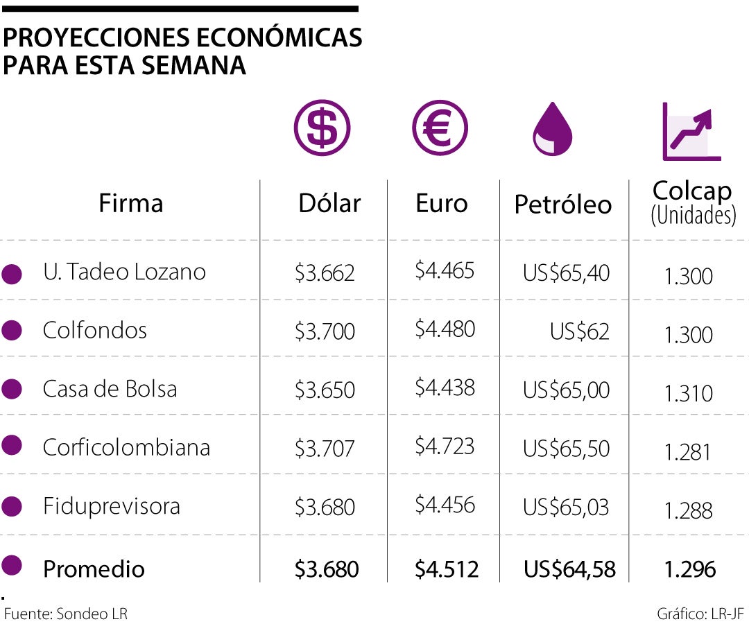 El diario La República presentó las estimaciones económicas semanales de los diferentes analistas colombianos, entre ellos el Club de Finanzas de Utadeo, quienes proyectan la moneda norteamericana para esta semana en $3.662; según los expertos, se espera que su cotización se mantenga a pesar de las manifestaciones programadas para esta semana en el país y el avance del paro. Sin embargo, la incertidumbre se mantiene de acuerdo con el repunte de la inflación de Estados Unidos y las posibles consecuencias que esto podría traer en materia de tasas de interés.