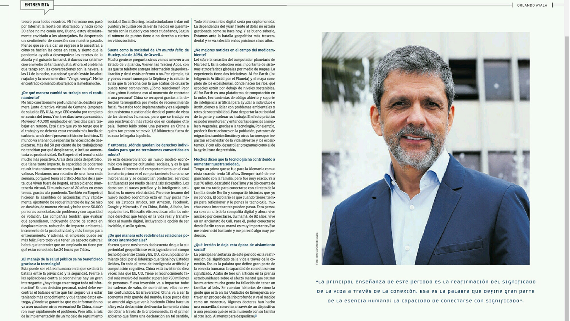 Hoy se encuentra en su casa, en Seattle, Estados Unidos, pasando el confinamiento. Para Ayala, la covid-19 "desnudó el contraste de los modelos económicos". Basta ver el panorama de los sistemas escolares en Colombia y en el mundo, donde se creería que todos los niños y jóvenes tienen acceso a un computador y a internet, pero no es así.