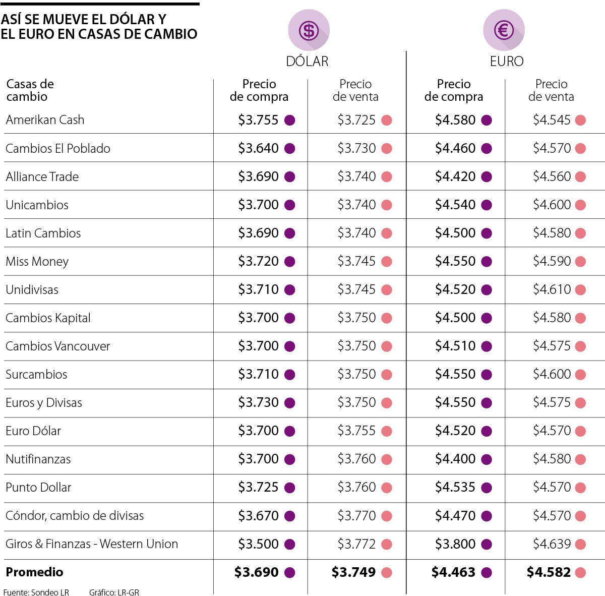 Cabe señalar que, entre las casas de cambio que venden más económico el dólar, se encuentran: Amerikan Cash, a $3.725; Cambios El Poblado, a $3.730; Alliance Trade, Latin Cambios y Unicambios, a $3.740; Miss Money y Unidivisas, a $3.745.