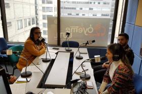 Daniela Daza líder del grupo de voluntarios Utadeo Ohana, Felipe Pinilla estudiante de Relaciones Internacionales y Carmen Elisa Castaño, directora de Bienestar Universitario estarán conversando...