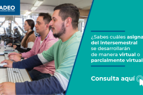 NovedadesMayo 14 / 2022Si estás interesado en cursar asignaturas durante el periodo INTERSEMESTRAL, ten en cuenta que el portal estará habilitado desde el día lunes 6 de junio a partir de las 8:00 a.m. hasta el martes 7 de junio a las 5:00 p.m.