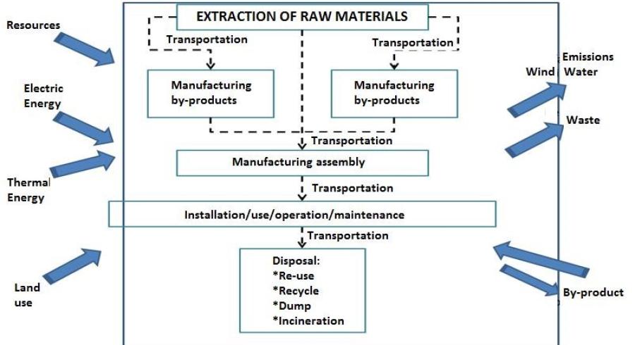 The aim of this study is to evaluate the environmental performance of different photovoltaic solar energy systems through a review of the scientific literature concerning the life-cycle assessment applied to different photovoltaic systems and using the ISO 14040 and ISO 14044 standards. A comparison between solar photovoltaic systems and conventional systems, power generation is performed. Through the LCA the environmental impacts associated with the analyzed throughout their life cycle systems were tested. These results show, in terms of cumulative energy demand (CED), that for the case of monocrystalline silicon (mc-Si) as one of the most used raw materials, 75.8% of 5150 MJ corresponding to the manufacture of 1m2 of photovoltaic module is required. As for the environmental performance, this technology produces only 0.7 g/GWh of greenhouse gas emissions, compared to 3.7 g/GWh and 44.3 g/GWh produced from sources such as oil and coal, respectively. Photovoltaic technology generates lower emissions corresponds to Cadmium - Tellurium (CdTe) solar cells with 0.3 g / KWh of greenhouse gas emissions. First, it was found that, during manufacture of photovoltaic panels, a contribution of CO2equ emissions is mainly related to the transformation of silicon micro granular and it corresponds to 47.61% of emissions per GWP. Second, emissions are related to the assembly of the panels (18.39%) and, thirdly, casting and production of wafers (16.54% of GWP emissions).