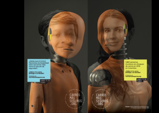 La campaña que coordiné desde la Iniciativa Carros Más Seguros tenía el slogan “Saber te da poder” y era un llamado de empoderamiento a la ciudadanía para tomar decisiones informadas sobre los carros, haciendo también un llamado a la industria automotriz a incluir estándares en los vehículos que entran al país, recomendados por las Naciones Unidas. La imagen hace alusión a un dummy, que son maquetas a escala de un ser humano los cuales se estrellan en pruebas de choque para probar la seguridad de los vehículos. El mensaje de fondo consistía en que las personas no se conviertan en dummys, y que tomando decisiones acertadas pueden evitar estar en un siniestro vial que es prevenible.