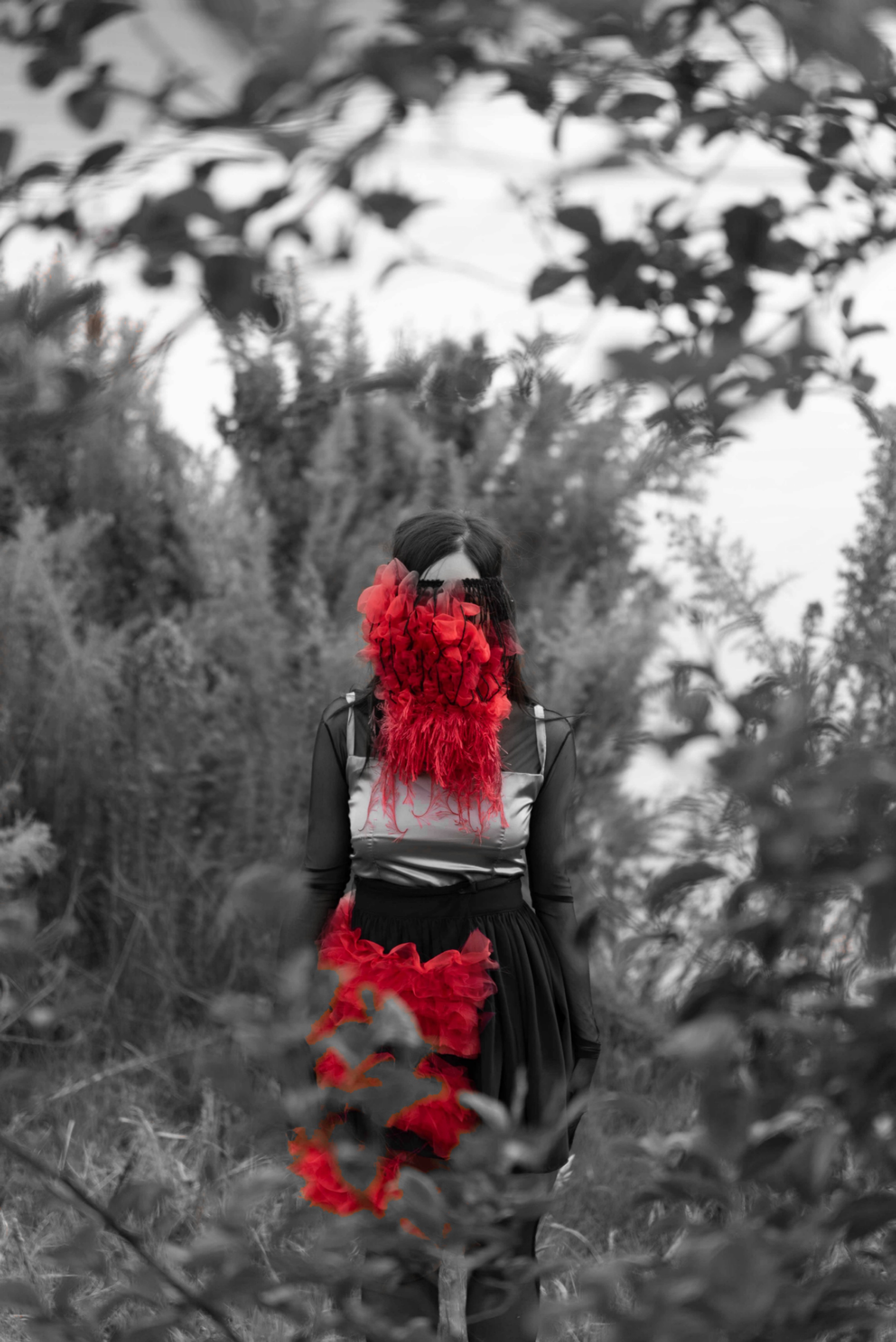 V.G: Principalmente, el performance surge porque nosotras como marca tenemos la idea de ser una marca activista, que genere reflexión, que llegue a diferentes espacios culturales, académicos, no solamente a las personas que quieran consumir las prendas, sino a todo aquel que quiera entender estos conceptos, mostrando la moda desde otra perspectiva más amplia, no solamente en una pasarela, sino que también puede estar en un museo, que puede representarse y ser reflexiva e importante en la sociedad, usando así el performance para dejar una recordación de lo que es el concepto, abordarlo y llegar a una solución y transformación de lo que es no solamente la moda sino también el miedo.