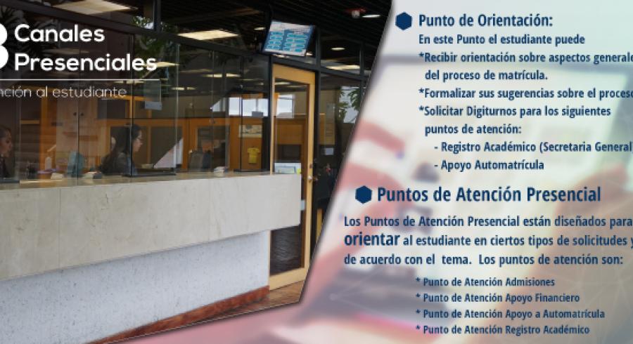 La Universidad dispone de canales de atención presencial, cuatro (4) Puntos de Atención temáticos* y un (1) Punto de Orientación para Información General.