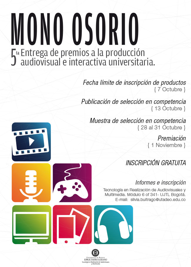 Desde el año 2009 se lleva a cabo la entrega de premios a la producción audiovisual universitaria ´Mono Osorio´, evento creado en homenaje al fallecido productor colombiano Jaime “el mono” Osorio, que desde su primera edición ha buscado reconocer los trabajos destacados de la TRAM en cuanto a producción, dirección, dirección de fotografía, dirección de arte, escritura de guión y montaje. En cada una de sus versiones, el evento ha contado con más de 15 trabajos participantes, realizados por estudiantes del Programa. En el año 2011 el evento abrió su convocatoria a otros programas académicos de la Universidad y carreras relacionadas con el quehacer audiovisual de la ciudad de Bogotá; en dicha edición contó con la participación de piezas audiovisuales del SENA y la Universidad de la Sabana.