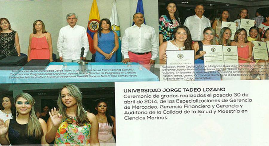 La Revista Explora en su edición del mes de Junio hace mención a los grados de las Especializaciones en Gerencia y Auditoría de la Calidad en la Salud, Gerencia de Mercadeo, Gerencia Financiera y la Maestría en Ciencias del Mar, ceremonia de grado que se llevó a cabo en las instalaciones del Hotel Tamacá.