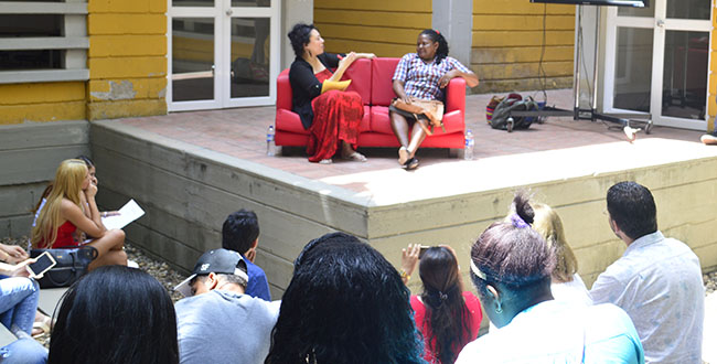 Instantes del conversatorio entre Gledys López y Claudia Ayola.